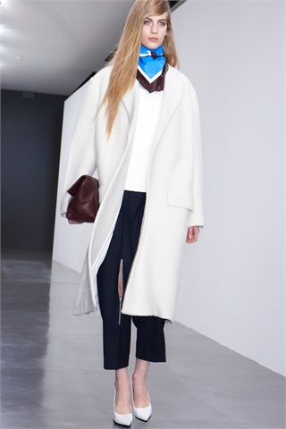 Blugirl also focuses on long white faux fur gilet, and combines it with an elegant dress and fur boots.
